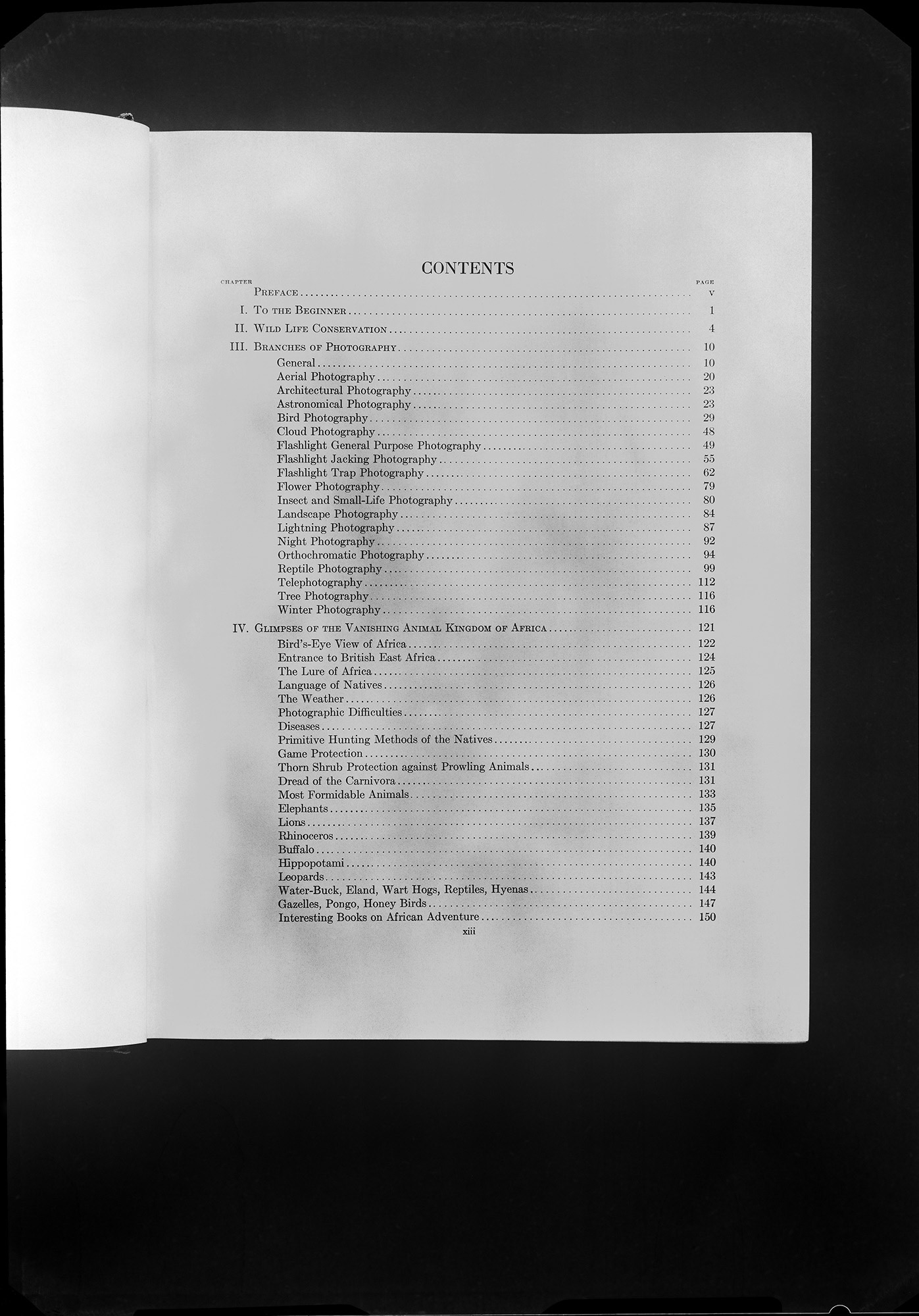 Nesbit, William, How To Hunt With The Camera, 1926, Reproduction of Contents Page 1.